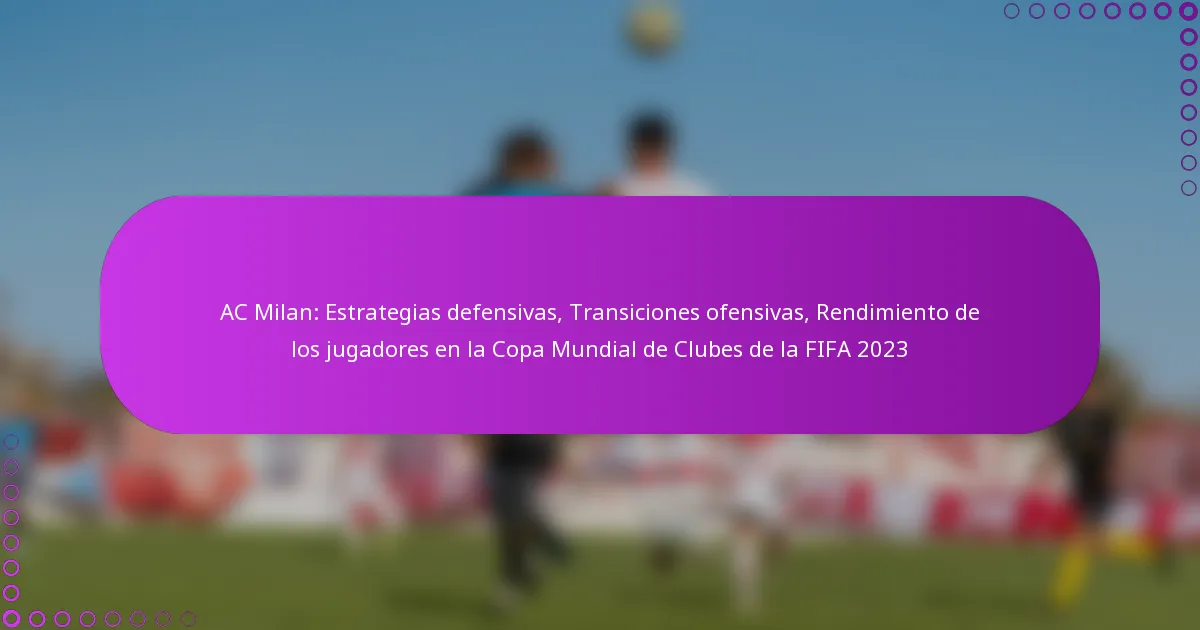 Las estrategias defensivas del AC Milan en la Copa Mundial de Clubes de la FIFA 2023 se centran en una formación sólida, flexibilidad táctica y los roles de jugadores clave para prevenir goles de manera efectiva. Al emplear un enfoque estructurado, buscan neutralizar a los oponentes mientras mantienen la capacidad de transitar rápidamente al ataque.