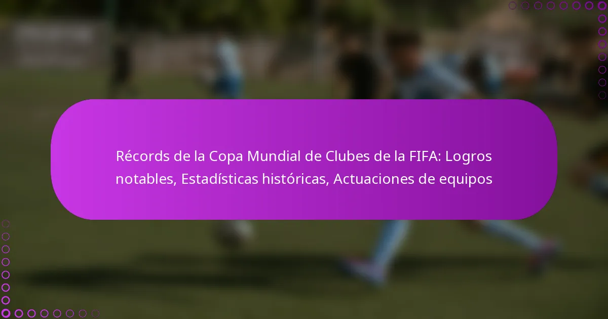 La Copa Mundial de Clubes de la FIFA ha visto logros notables desde su creación, mostrando los mejores equipos de clubes de todo el mundo. Los récords clave destacan la dominancia de ciertos equipos, jugadores destacados y resultados inesperados que han definido la historia del torneo.