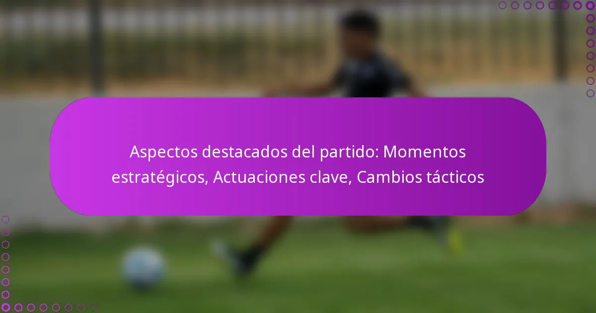 Aspectos destacados del partido: Momentos estratégicos, Actuaciones clave, Cambios tácticos