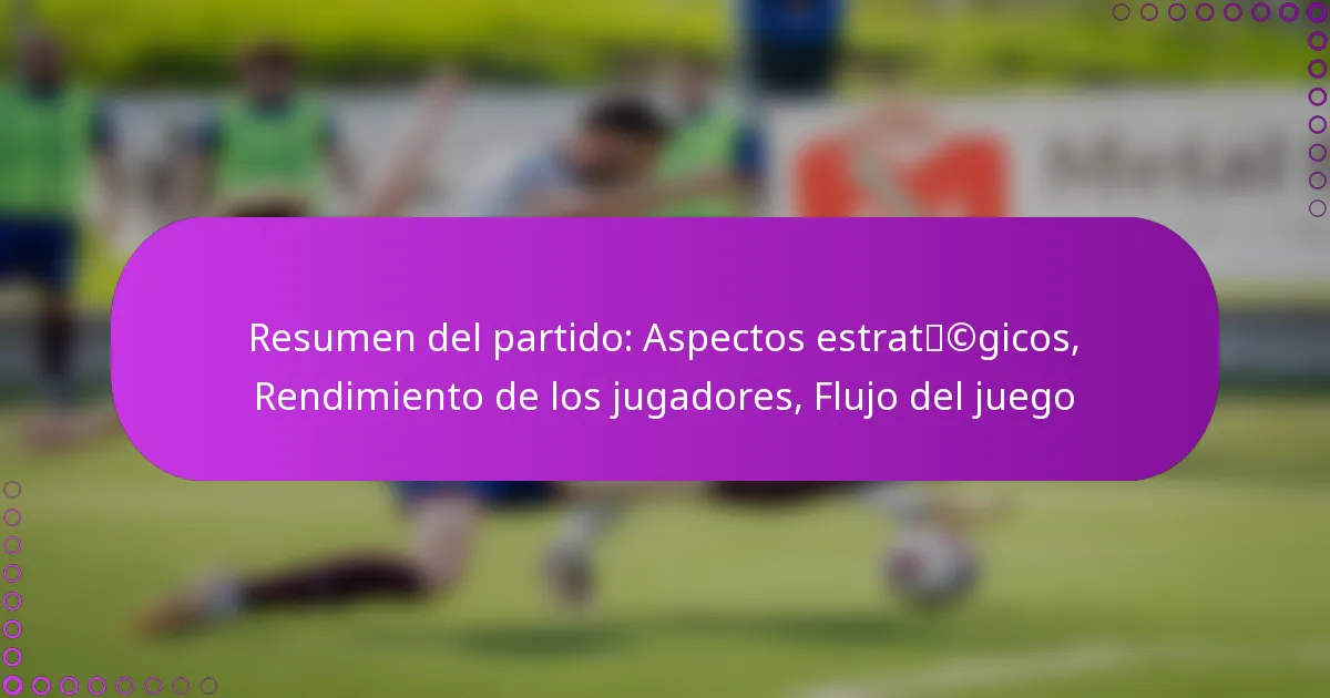 Resumen del partido: Aspectos estratégicos, Rendimiento de los jugadores, Flujo del juego