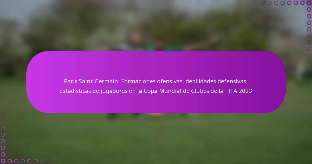 Las estadísticas de los jugadores de la Copa Mundial de Clubes de la FIFA 2023 revelan conocimientos cruciales sobre el rendimiento del Paris Saint-Germain, destacando tanto su poder ofensivo como sus vulnerabilidades defensivas. Analizar estas métricas ayuda a entender cómo las contribuciones individuales moldean los resultados de los partidos y el éxito general del equipo.