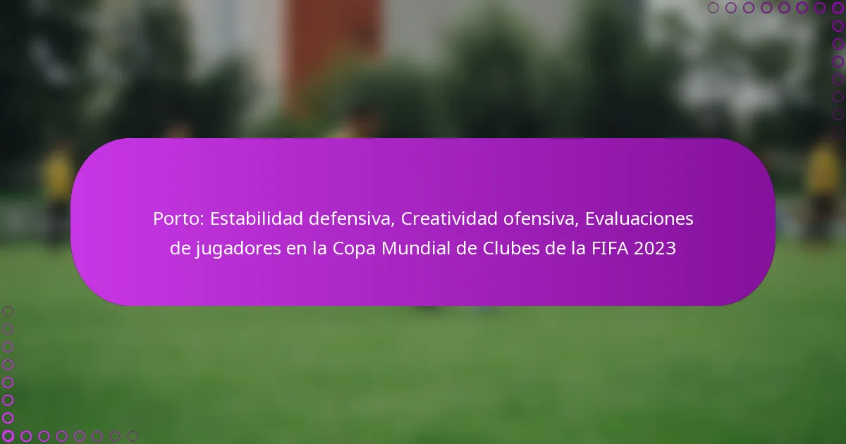 Porto: Estabilidad defensiva, Creatividad ofensiva, Evaluaciones de jugadores en la Copa Mundial de Clubes de la FIFA 2023