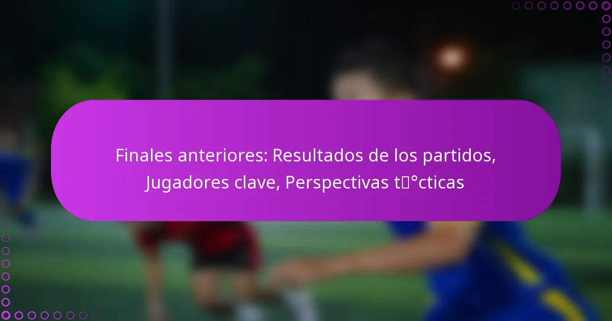Finales anteriores: Resultados de los partidos, Jugadores clave, Perspectivas tácticas